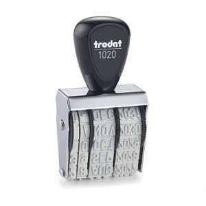 Для получения оттиска предварительно окрашивается при помощи настольной штемпельной подушки.
