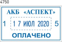 4750 PRINTY 4.0 ДАТЕР СО СВОБОДНЫМ ПОЛЕМ 41х24мм ВЫСОТА ШРИФТА 4мм, РУС., СИНЯЯ ПОДУШКА